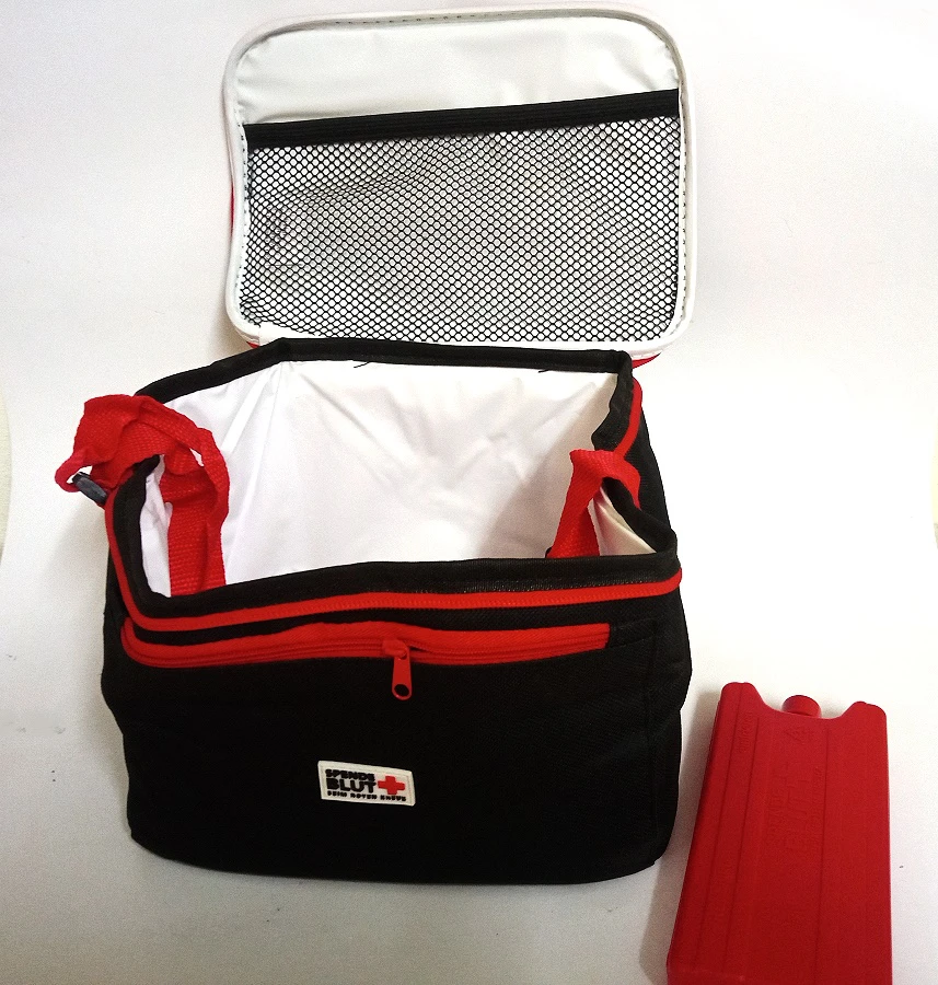 Kleine Kühltasche verschließbar und mit Kühlakku.