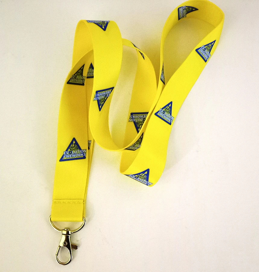 von Evolution Fireworks mit Karabinerhakengelb mit Logo, Bandbreite ca. 2,5 cm