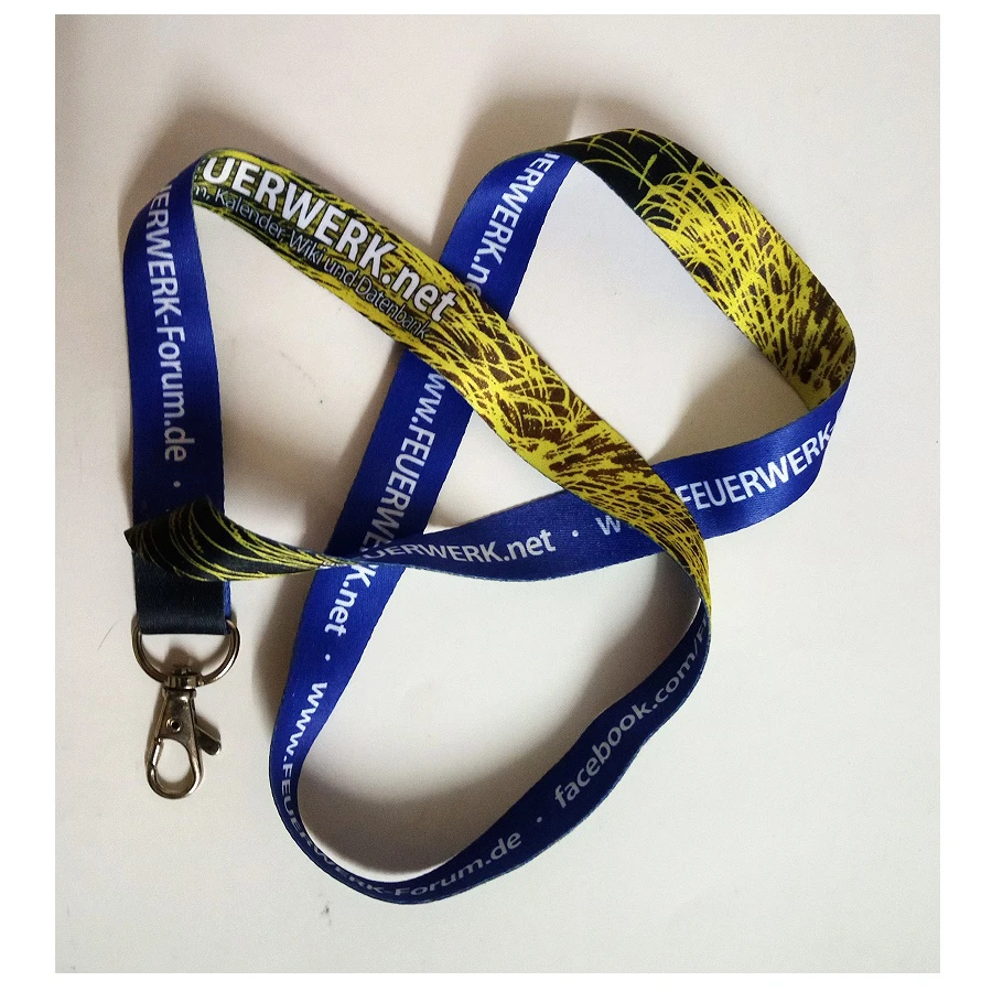 von Feuerwerk.net mit Karabinerhakenblau/gelb+schwarz mit Logo, Bandbreite ca. 2,0 cm